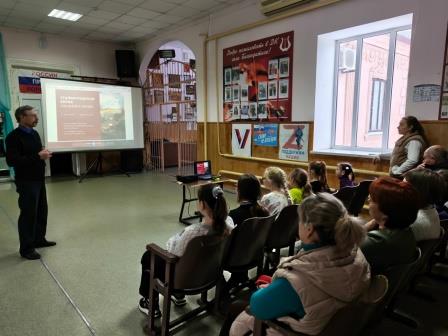 2 февраля один из дней воинской славы России — День Победы Красной Армии в Сталинградской битве. Она ознаменовала начало коренного перелома в ходе Великой Отечественной войны, закончилось наступление немецко-фашистских войск и началось их изгнание с территории Советского Союза. Специалист Дома культуры познакомил ребят с ходом Сталинградского сражения, рассказал о массовом героизме защитников города, проявивших в боях невероятное мужество, силу, самопожертвование, непоколебимую волю к Победе. |